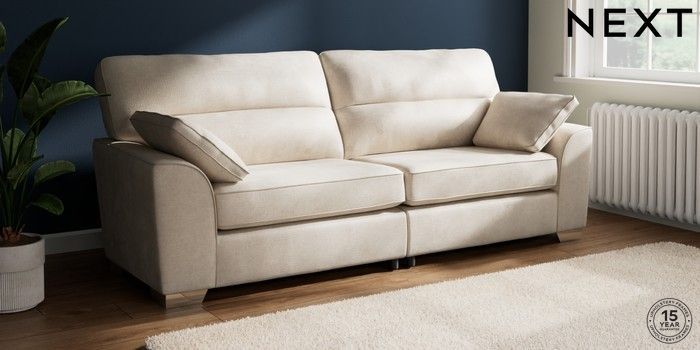 7.2.10 Stamford Highback 4 Seater Sofa Plush Chenille Oyster Large Square Angle - Chrome Metal | Made Click here to use our website with more accessibility support, for example screen readers