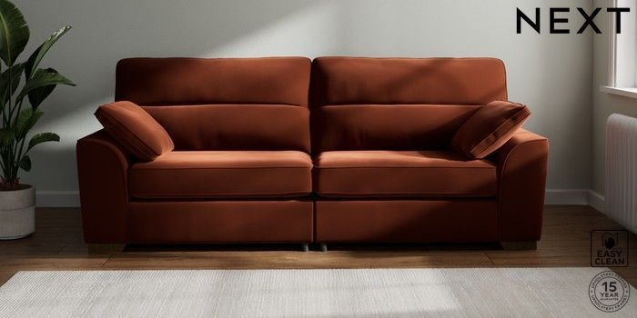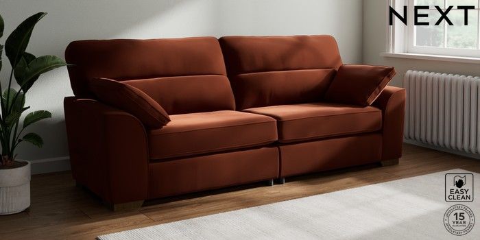 7.2.10 Stamford Highback 4 Seater Sofa Plush Velvet Easy Clean Ginger Orange Large Square Angle - Mid | Made Click here to use our website with more accessibility support, for example screen readers