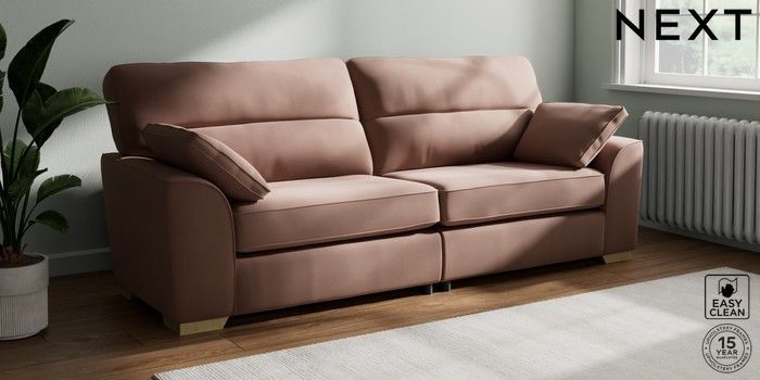 7.2.10 Stamford Highback 4 Seater Sofa Plush Velvet Easy Clean Mid Natural Large Square Angle - Light | Made Click here to use our website with more accessibility support, for example screen readers