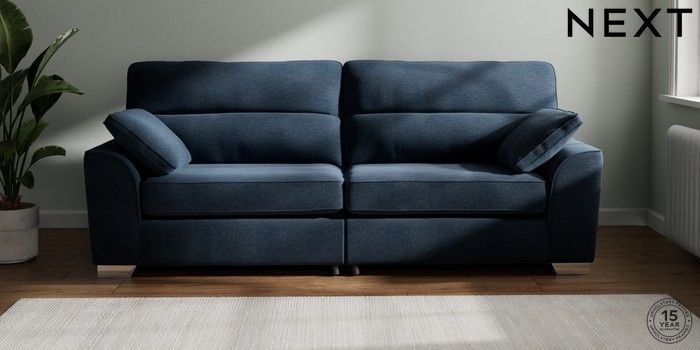 7.2.10 Stamford Highback 4 Seater Sofa Ripple Chenille Dark Blue Large Square Angle - Chrome Metal | Made Click here to use our website with more accessibility support, for example screen readers