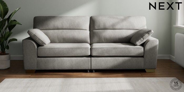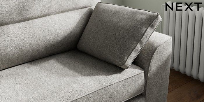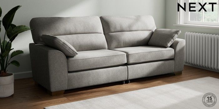 7.2.10 Stamford Highback 4 Seater Sofa Tweedy Chenille Mid Grey Large Square Angle - Brushed Brass | Made Click here to use our website with more accessibility support, for example screen readers