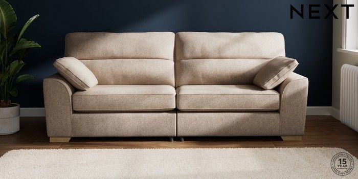 7.2.10 Stamford Highback 4 Seater Sofa Tweedy Chenille Mid Natural Large Square Angle - Light | Made Click here to use our website with more accessibility support, for example screen readers