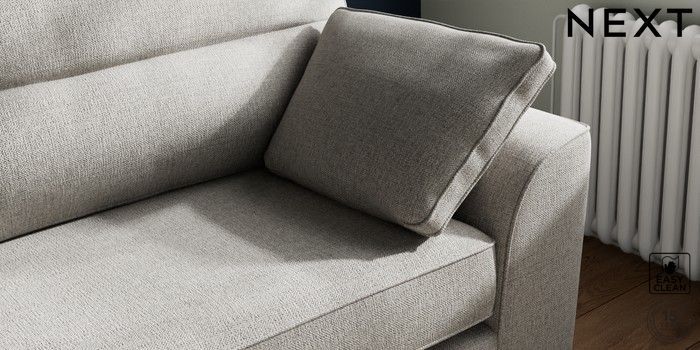 7.2.10 Stamford Highback 4 Seater Sofa Woven Chenille Easy Clean Light Grey Large Square Angle - Brushed Brass | Made Click here to use our website with more accessibility support, for example screen readers