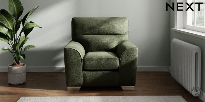7.2.10 Stamford Highback Armchair Boucle Chenille Dark Moss Green Square Angle - Chrome Metal | Made Click here to use our website with more accessibility support, for example screen readers