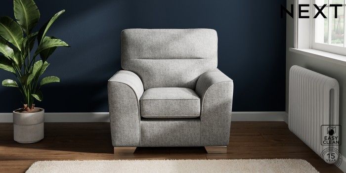7.2.10 Stamford Highback Armchair Chunky Boucle Easy Clean Light Grey Square Angle - Chrome Metal | Made Click here to use our website with more accessibility support, for example screen readers