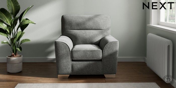 7.2.10 Stamford Highback Armchair Chunky Chenille Dark Grey Square Angle - Chrome Metal | Made Click here to use our website with more accessibility support, for example screen readers