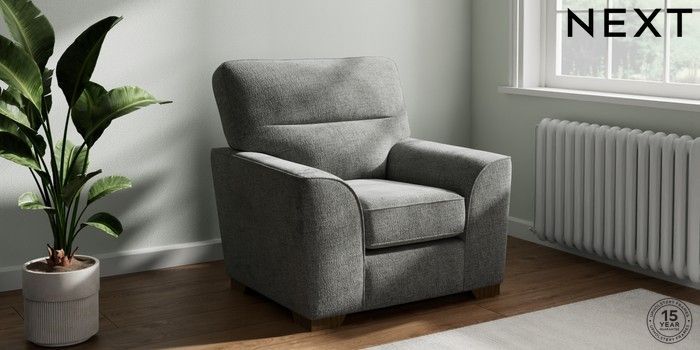 7.2.10 Stamford Highback Armchair Chunky Chenille Dark Grey Square Angle - Mid | Made Click here to use our website with more accessibility support, for example screen readers