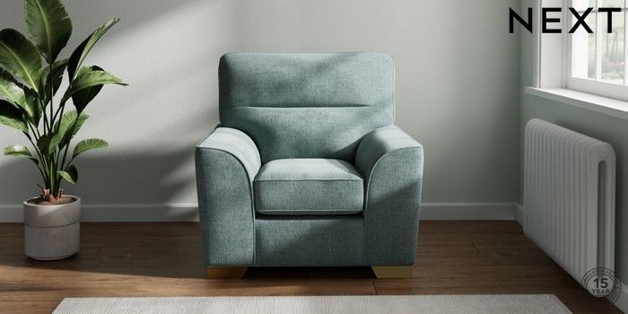 7.2.10 Stamford Highback Armchair Chunky Chenille Light Teal Green Square Angle - Brushed Brass | Made Click here to use our website with more accessibility support, for example screen readers