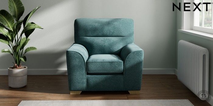 7.2.10 Stamford Highback Armchair Chunky Chenille Mid Teal Green Square Angle - Light | Made Click here to use our website with more accessibility support, for example screen readers