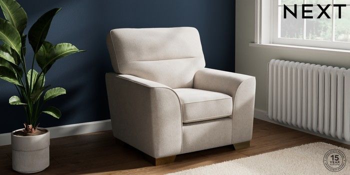 7.2.10 Stamford Highback Armchair Chunky Chenille Oyster Square Angle - Brushed Brass | Made Click here to use our website with more accessibility support, for example screen readers