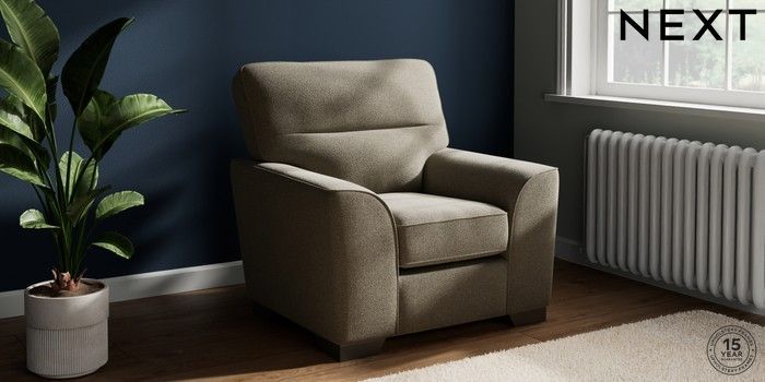 7.2.10 Stamford Highback Armchair Chunky Marl Light Olive Green Square Angle - Gunmetal | Made Click here to use our website with more accessibility support, for example screen readers
