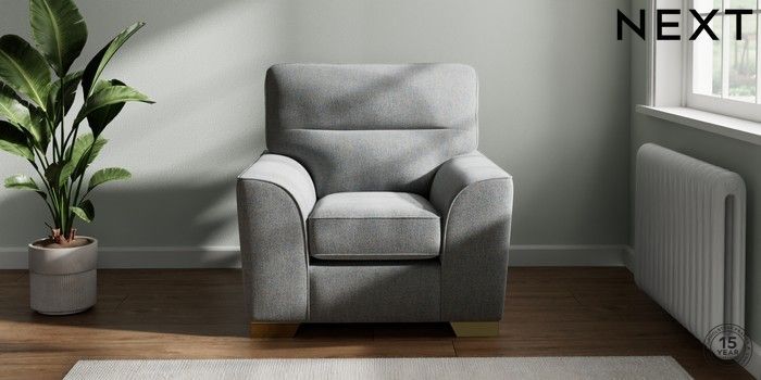 7.2.10 Stamford Highback Armchair Chunky Marl Mid Grey Square Angle - Brushed Brass | Made Click here to use our website with more accessibility support, for example screen readers
