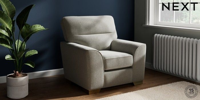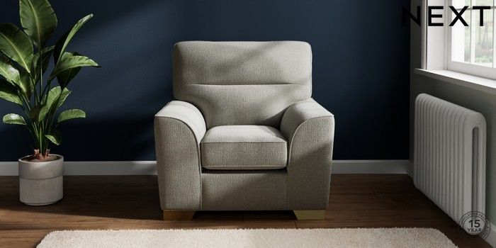 7.2.10 Stamford Highback Armchair Chunky Texture Dove Square Angle - Brushed Brass | Made Click here to use our website with more accessibility support, for example screen readers