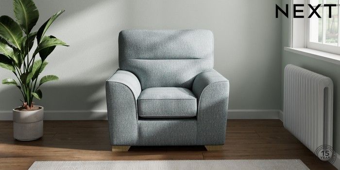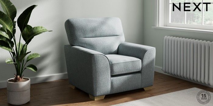 7.2.10 Stamford Highback Armchair Chunky Weave Mid Blue Square Angle - Light | Made Click here to use our website with more accessibility support, for example screen readers