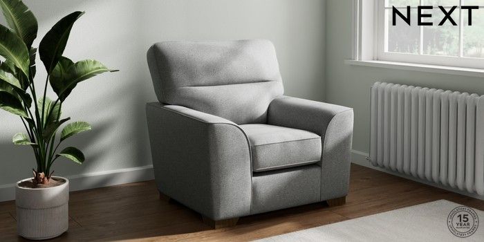 7.2.10 Stamford Highback Armchair Chunky Weave Mid Grey Square Angle - Mid | Made Click here to use our website with more accessibility support, for example screen readers