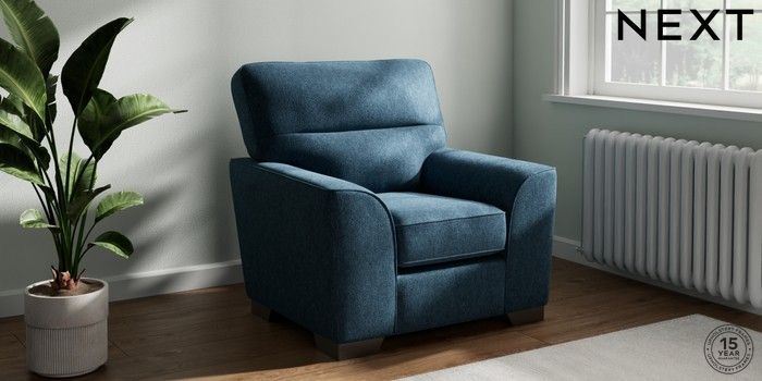 7.2.10 Stamford Highback Armchair Cotswold Chenille Dark Blue Square Angle - Gunmetal | Made Click here to use our website with more accessibility support, for example screen readers