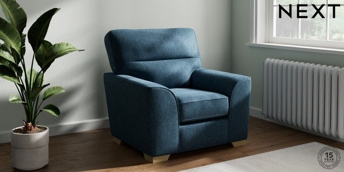 7.2.10 Stamford Highback Armchair Cotswold Chenille Dark Blue Square Angle - Light | Made Click here to use our website with more accessibility support, for example screen readers