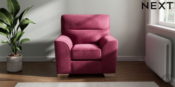 7.2.10 Stamford Highback Armchair Cotswold Chenille Dark Raspberry Pink Square Angle - Chrome Metal | Made Click here to use our website with more accessibility support, for example screen readers