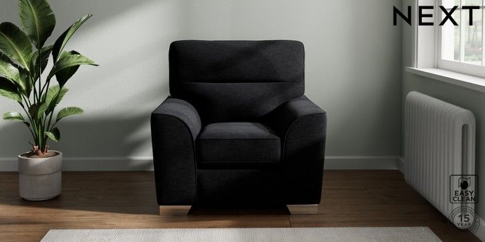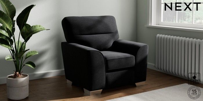7.2.10 Stamford Highback Armchair Fine Chenille Easy Clean Black Square Angle - Chrome Metal | Made Click here to use our website with more accessibility support, for example screen readers