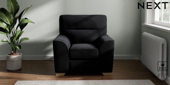 7.2.10 Stamford Highback Armchair Fine Chenille Easy Clean Black Square Angle - Light | Made Click here to use our website with more accessibility support, for example screen readers