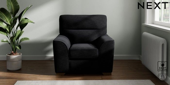 7.2.10 Stamford Highback Armchair Fine Chenille Easy Clean Black Square Angle - Mid | Made Click here to use our website with more accessibility support, for example screen readers