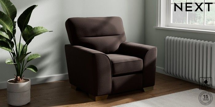 7.2.10 Stamford Highback Armchair Fine Chenille Easy Clean Chocolate Brown Square Angle - Brushed Brass | Made Click here to use our website with more accessibility support, for example screen readers
