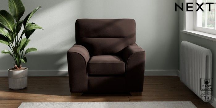 7.2.10 Stamford Highback Armchair Fine Chenille Easy Clean Chocolate Brown Square Angle - Mid | Made Click here to use our website with more accessibility support, for example screen readers