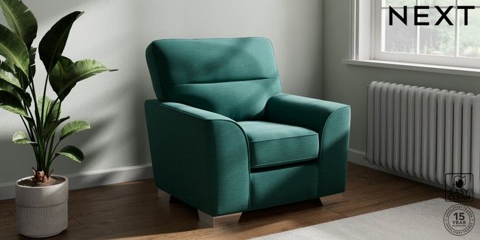 7.2.10 Stamford Highback Armchair Fine Chenille Easy Clean Dark Juniper Green Square Angle - Chrome Metal | Made Click here to use our website with more accessibility support, for example screen readers