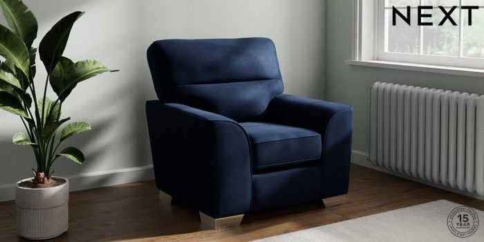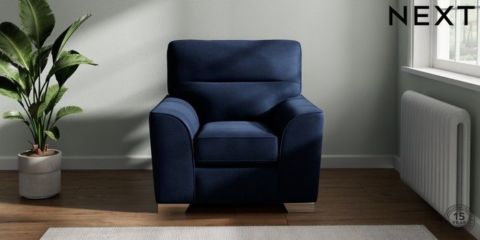 7.2.10 Stamford Highback Armchair Luxe Chenille Navy Blue Square Angle - Chrome Metal | Made Click here to use our website with more accessibility support, for example screen readers