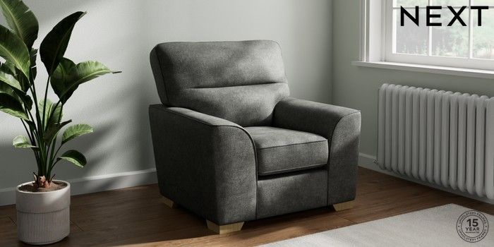 7.2.10 Stamford Highback Armchair Plush Chenille Dark Grey Square Angle - Light | Made Click here to use our website with more accessibility support, for example screen readers