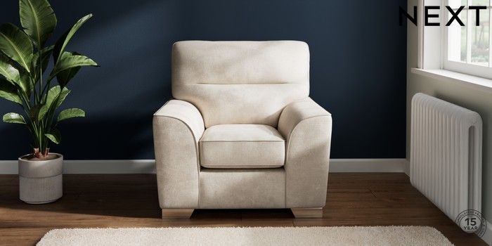7.2.10 Stamford Highback Armchair Plush Chenille Oyster Square Angle - Chrome Metal | Made Click here to use our website with more accessibility support, for example screen readers