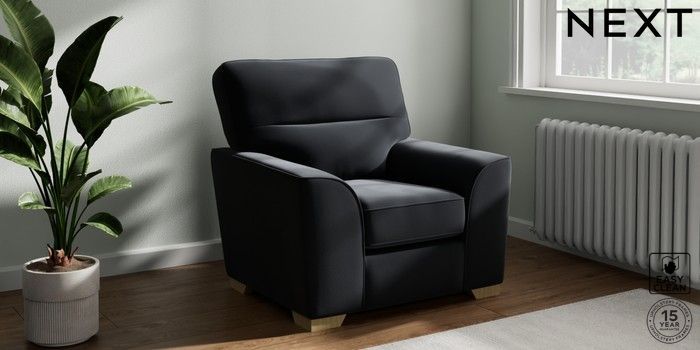 7.2.10 Stamford Highback Armchair Plush Velvet Easy Clean Charcoal Grey Square Angle - Light | Made Click here to use our website with more accessibility support, for example screen readers