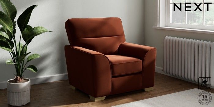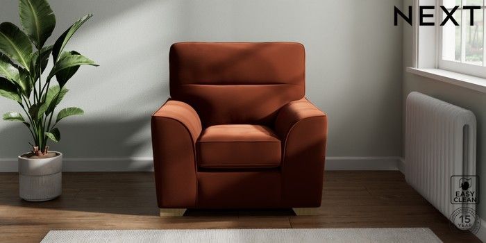 7.2.10 Stamford Highback Armchair Plush Velvet Easy Clean Ginger Orange Square Angle - Light | Made Click here to use our website with more accessibility support, for example screen readers