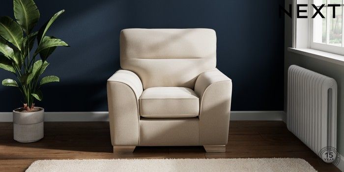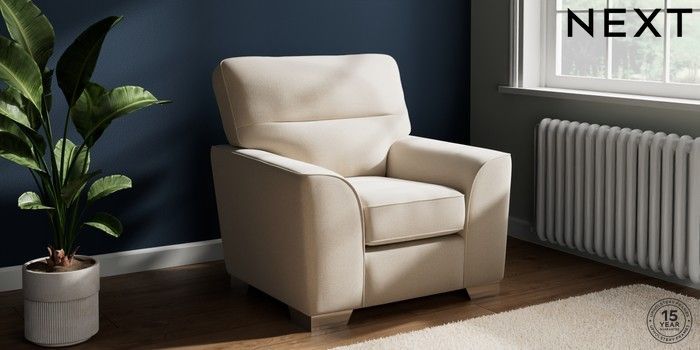 7.2.10 Stamford Highback Armchair Studio Chenille Oyster Square Angle - Chrome Metal | Made Click here to use our website with more accessibility support, for example screen readers