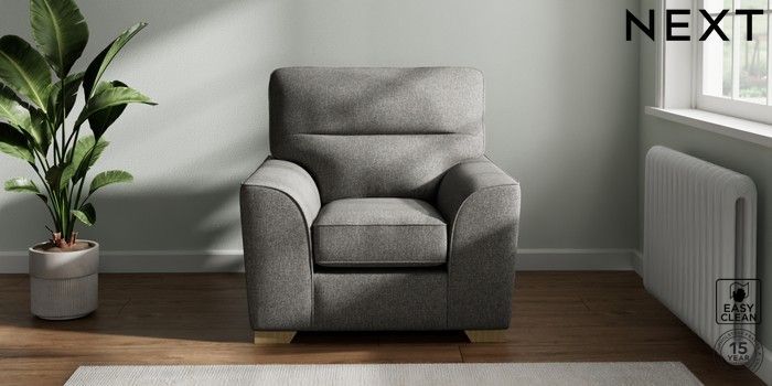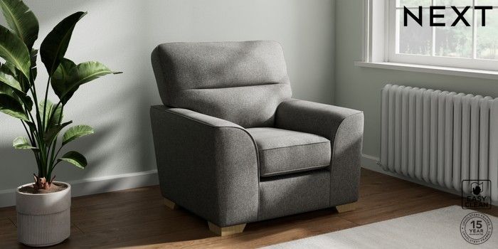 7.2.10 Stamford Highback Armchair Tweedy Blend Easy Clean Dark Grey Square Angle - Light | Made Click here to use our website with more accessibility support, for example screen readers
