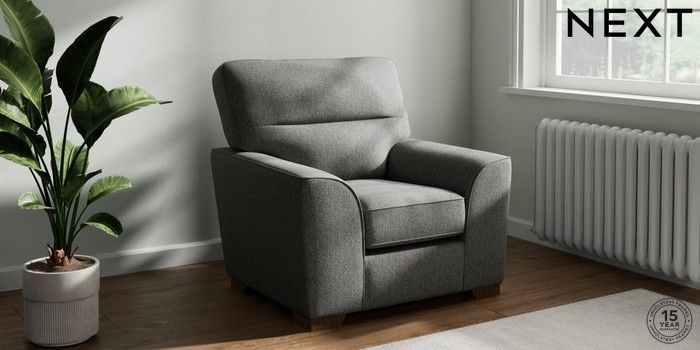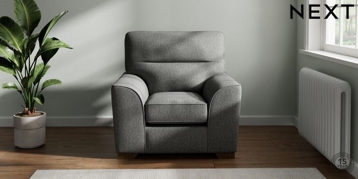 7.2.10 Stamford Highback Armchair Tweedy Chenille Dark Grey Square Angle - Mid | Made Click here to use our website with more accessibility support, for example screen readers