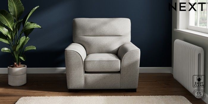 7.2.10 Stamford Highback Armchair Woven Chenille Easy Clean Light Grey Square Angle - Dark | Made Click here to use our website with more accessibility support, for example screen readers