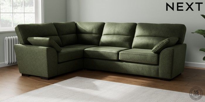 7.2.10 Stamford Highback Large Corner Sofa - Left Hand Boucle Chenille Dark Moss Green Large Square Angle - Dark | Made Click here to use our website with more accessibility support, for example screen readers