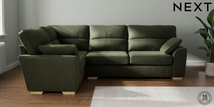 7.2.10 Stamford Highback Large Corner Sofa - Left Hand Boucle Chenille Dark Moss Green Large Square Angle - Light | Made Click here to use our website with more accessibility support, for example screen readers