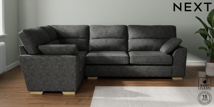 7.2.10 Stamford Highback Large Corner Sofa - Left Hand Boucle Weave Easy Clean Charcoal Grey Large Square Angle - Light | Made Click here to use our website with more accessibility support, for example screen readers