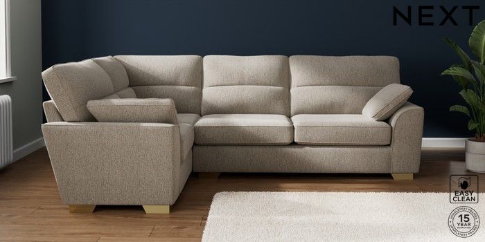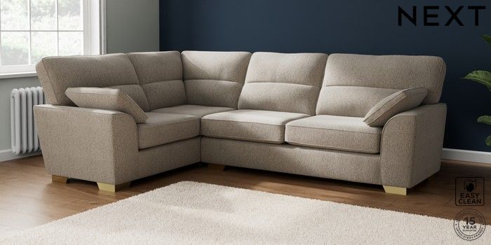 7.2.10 Stamford Highback Large Corner Sofa - Left Hand Chunky Boucle Easy Clean Dove Large Square Angle - Brushed Brass | Made Click here to use our website with more accessibility support, for example screen readers
