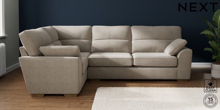 7.2.10 Stamford Highback Large Corner Sofa - Left Hand Chunky Boucle Easy Clean Dove Large Square Angle - Mid | Made Click here to use our website with more accessibility support, for example screen readers