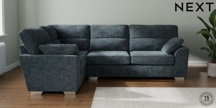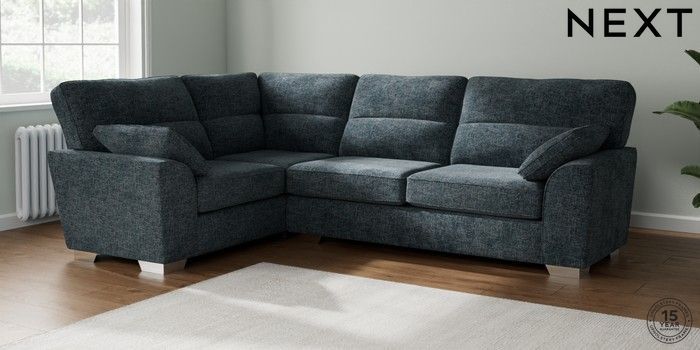 7.2.10 Stamford Highback Large Corner Sofa - Left Hand Chunky Chenille Dark Navy Blue Large Square Angle - Chrome Metal | Made Click here to use our website with more accessibility support, for example screen readers