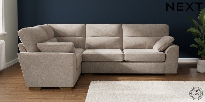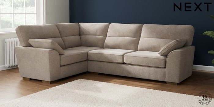 7.2.10 Stamford Highback Large Corner Sofa - Left Hand Chunky Chenille Light Dove Large Square Angle - Mid | Made Click here to use our website with more accessibility support, for example screen readers