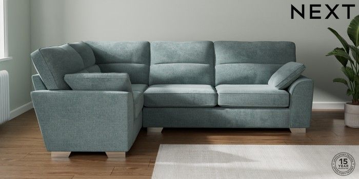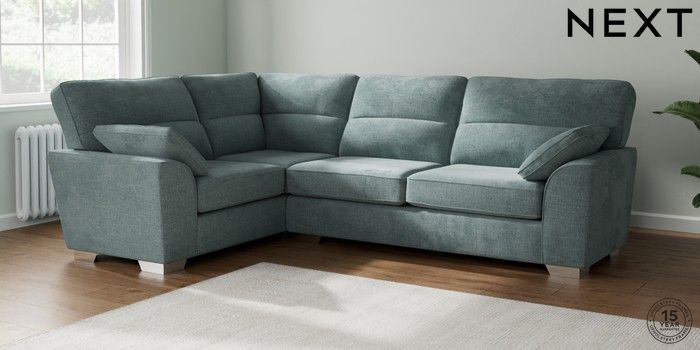 7.2.10 Stamford Highback Large Corner Sofa - Left Hand Chunky Chenille Light Teal Green Large Square Angle - Chrome Metal | Made Click here to use our website with more accessibility support, for example screen readers