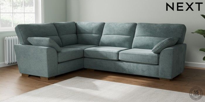 7.2.10 Stamford Highback Large Corner Sofa - Left Hand Chunky Chenille Light Teal Green Large Square Angle - Mid | Made Click here to use our website with more accessibility support, for example screen readers