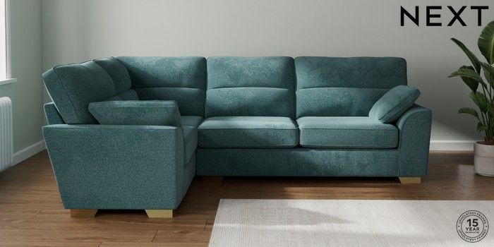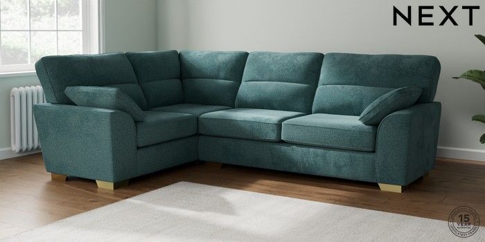 7.2.10 Stamford Highback Large Corner Sofa - Left Hand Chunky Chenille Mid Teal Green Large Square Angle - Brushed Brass | Made Click here to use our website with more accessibility support, for example screen readers