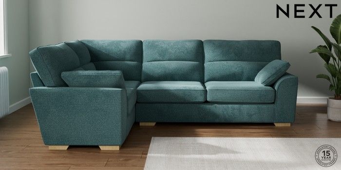 7.2.10 Stamford Highback Large Corner Sofa - Left Hand Chunky Chenille Mid Teal Green Large Square Angle - Light | Made Click here to use our website with more accessibility support, for example screen readers