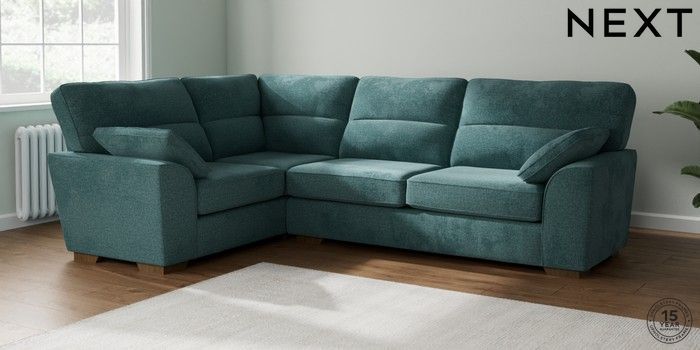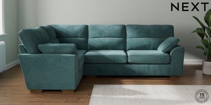 7.2.10 Stamford Highback Large Corner Sofa - Left Hand Chunky Chenille Mid Teal Green Large Square Angle - Mid | Made Click here to use our website with more accessibility support, for example screen readers