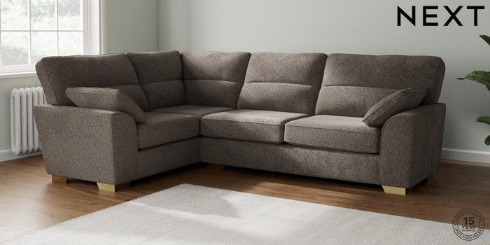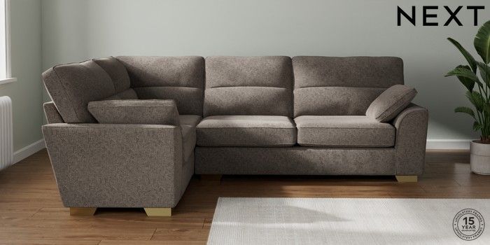 7.2.10 Stamford Highback Large Corner Sofa - Left Hand Chunky Chenille Mink Brown Large Square Angle - Brushed Brass | Made Click here to use our website with more accessibility support, for example screen readers